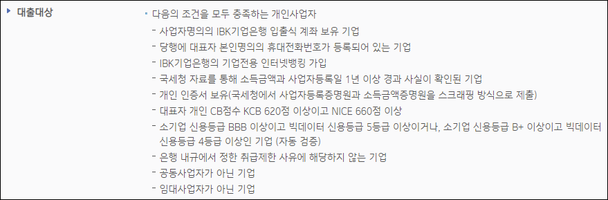 - 사업자 명의의 기업은행 입출식 계좌를 보유하고 있는 기업