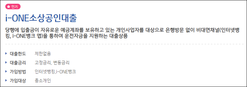 소상공인 및 개인사업자, 자영업자를 대상으로 은행 방문없이 비대면 채널로 대출을 신청할 수 있는 소상공인 전용 신용대출 상품이 있습니다.