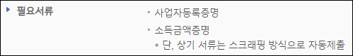 - 국세청 자교를 통해 소득금액과 사업자등록일 1년 이상 경과 사실이 확인된 기업