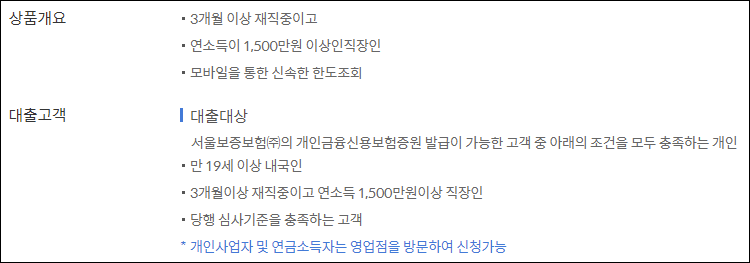 - 3개월이상 재직중이고 연소득 1500만원 이상인 직장인
