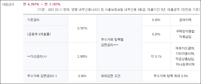 기준금리는 신청시기에 따라 달라질 수 있으며, 가산금리와 우대금리는 신청인의 대출조건에 따라 달라지게 됩니다.