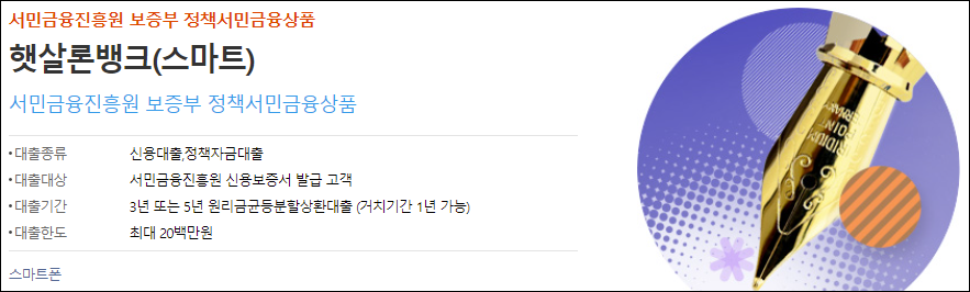 햇살론뱅크는 정부정책 서민금융 상품을 이용하면서 신용도가 상승하고 부채가 줄어들었지만 여전히 1금융권 대출 상품을 이용하기에는 신용등급이 낮은 분이 다시 고금리 대출을 이용하지 않도록 정부에서 지원하는 서민대출 상품입니다.