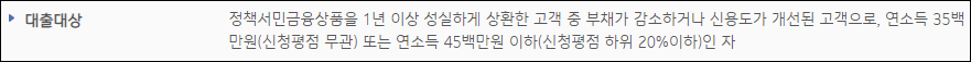 - 개인신용평점 하위 20%에 해당하면서 연소득 4500만원 이하