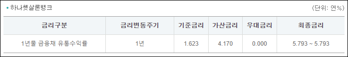 연간 5.793%의 금리가 적용될 수 있지만 신청시기 및 대출조건 등에 따라 실제 금리는 달라질 수 있으니 참고만 하시길 바랍니다.