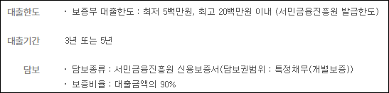 2000만원 이내에서 서민금융진흥원 보증한도만큼 대출신청이 가능하며, 보증한도는 신청인의 신용등급 및 연간소득, 상환여력에 따라 결정됩니다.