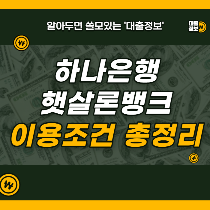 오늘은 하나은행 햇살론뱅크에 대해 설명해드리도록 하겠습니다.