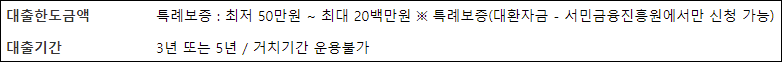 대출기간은 3년 또는 5년중 하나를 신청인이 선택할 수 있으며, 이자만 납입하는 거치기간은 별도로 운용할 수 없습니다.