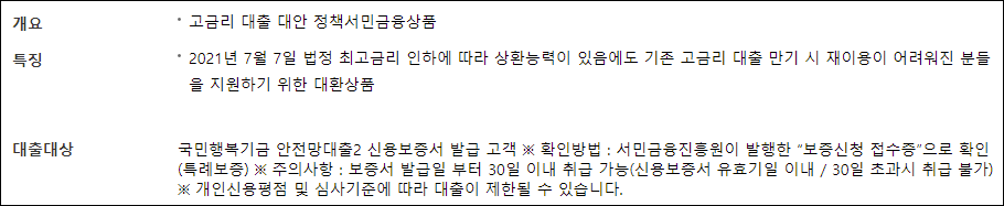 안전망대출은 법정최고금리 인하에 따라 상환능력이 있음에도 기존 고금리 대출 만기 시 재이용이 어려워진 분들을 지원하기 위한 정부지원 대환대출 상품입니다.