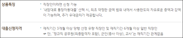 국민은행이 선정한 우량기업에 3개월 이상 재직중인 직장인 또는 재직기간 6개월 이상 경과한 일반 직장인이 신청할 수 있습니다.