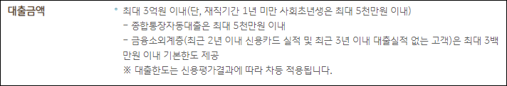 다만 재직기간 1년 미만의 사회초년생은 최대 5천만원 이내로 한도가 감액되며, 마이너스통장 대출은 최대 5천만원 이내로 한도가 책정될 수 있습니다.