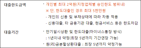 위의 금액은 최대치의 한도이며, 신청인의 신용등급 및 부채상태 등에 따라 실제한도는 달라질 수 있습니다.