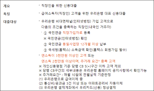 오늘은 우리은행 직장인 신용대출에 대해 설명해드리도록 하겠습니다.