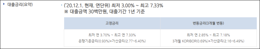 연간 2.85%의 금리부터 적용받을 수 있지만 신청인의 신용등급 및 대출조건 등에 따라 실제 금리는 달라질 수 있으니 참고만 하시길 바랍니다.