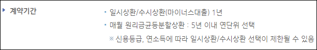 분할상환의 경우 대출 실행 이후에는 대출상환기간을 변경할 수 없으니 본인의 상환여력을 충분히 고려하여 신중히 결정하시길 바랍니다.
