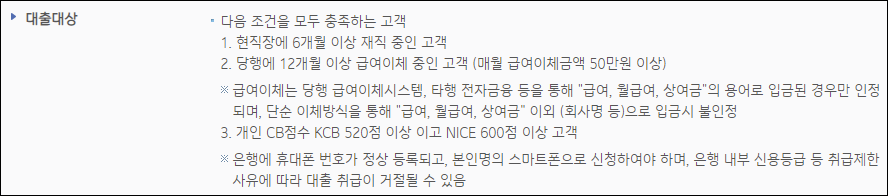 기업은행 직장인 신용대출 신청자격