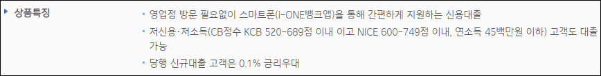 개인신용평점이 낮은 저신용자 및 소득이 낮은 저소득자도 신청할 수 있다는 것이 특징입니다.