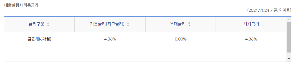 연간 4.36%의 금리가 적용될 수 있지만 신청시기 및 대출조건 등에 따라 실제 금리는 달라질 수 있으니 참고만 하시길 바랍니다.