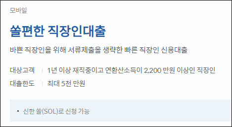 신한은행 직장인 신용대출은 모바일로 신청하는 비대면 대출 상품으로 대출 신청시 소득 및 재직 확인이 자동으로 이루어집니다.