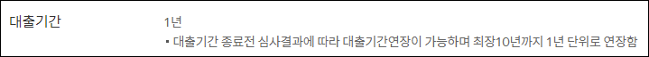 대출기간은 최초 1년으로 약정되며, 만기전 연장신청을 통해 1년단위로 연장하여 최장 10년까지 이용할 수 있으니 이용에 참고하시길 바랍니다.