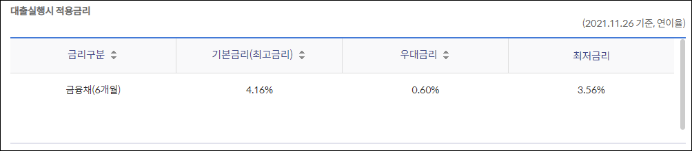 연간 최저 3.56%의 금리가 적용될 수 있지만 신청시기 및 대출조건 등에 따라 실제 금리는 달라질 수 있으니 참고만 하시길 바랍니다.