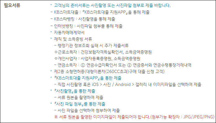 국민은행 신차구입대출 신청시 위와 같은 서류가 필요합니다.