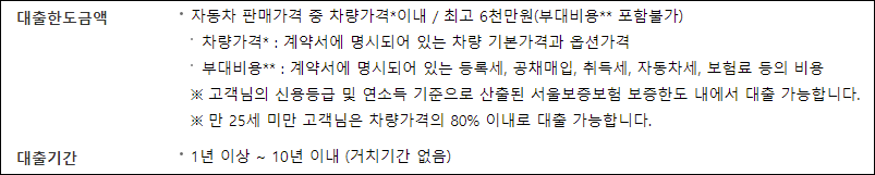 만 25세 미만인 경우 차량 가격의 최대 80% 이내로 대출이 가능하니 참고바랍니다.