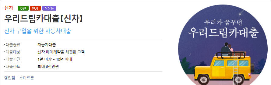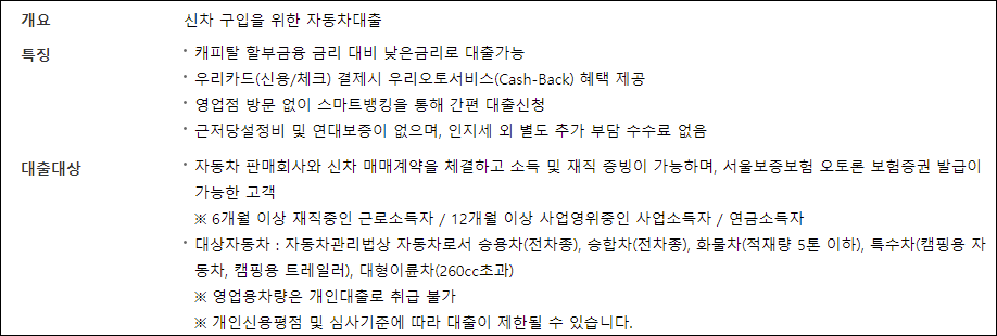오늘은 우리은행 신차구입대출에 대해 설명해드리도록 하겠습니다.