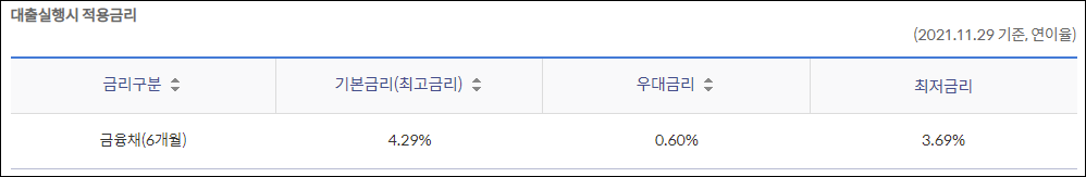 연간 3.69%의 금리가 적용받을 수 있지만 신청인의 신용등급 및 대출조건 등에 따라 실제 금리는 달라질 수 있으니 참고만 하시길 바랍니다.