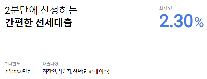 케이뱅크 전세대출에는 일반전세대출 상품과 만 34세 이하의 청년이 신청할 수 있는 전세대출 두가지가 있습니다.