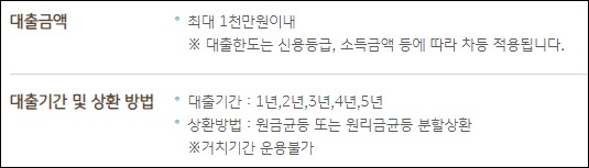 대출한도는 신청인의 신용등급 및 소득금액 등에 따라 달라질 수 있으니 참고 바랍니다.