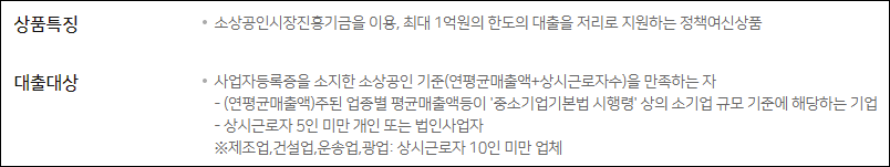 법적 소상공인 지위를 확보해야만 대출을 신청할 수 있는데 소상공인의 기준은 연평균매출액과 상시근로자수를 가지고 판단하고 있습니다.