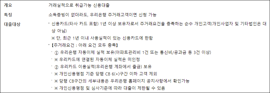 우리은행 무직자대출 신청자격