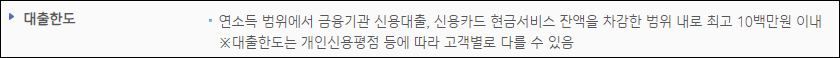 신용카드 현금서비스 금액 등을 차감하여 최종 한도가 책정되며, 신청인의 개인신용평점에 따라 한도는 달라질 수 있습니다.