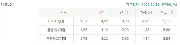 기준금리는 신청시기의 시장금리에 따라 달라질 수 있으며, 가산금리와 우대금리는 신청인의 대출조건 등에 따라 달라지게 됩니다.