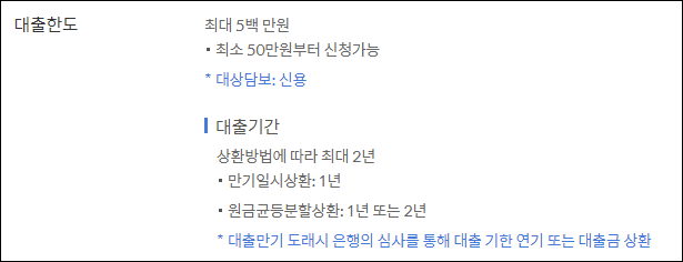 최소 50만원부터 신청이 가능하며, 신청인의 신용등급 및 상환여력 등에 따라 한도는 달라질 수 있습니다.