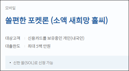신한은행 소액대출은 소액의 생활안정자금이 필요한 경우 복잡한 절차없이 간편하게 신청할 수 있는 비대면 소액대출 상품입니다.