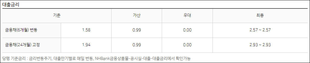 기준금리는 신청시기의 시장금리에 따라 달라질 수 있으며, 가산금리와 우대금리는 신청인의 대출조건 등에 따라 달라지게 됩니다.
