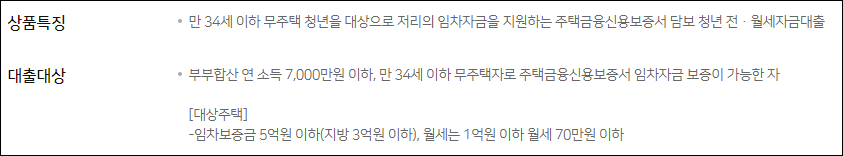 만 34세 이하 청년의 주거비 부담을 완화하기 위한 정부지원 청년 전용 전월세 대출 상품이 있습니다.
