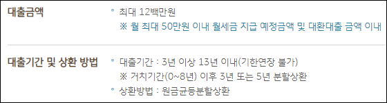 월 최대 50만원 이내에서 월세금 지급 예정금액만큼 대출신청이 가능합니다.