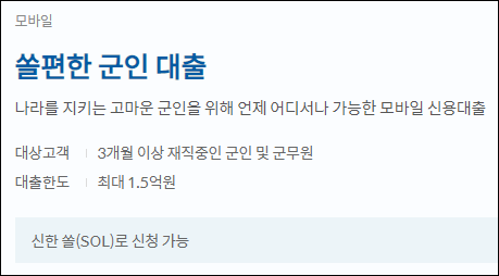 오늘은 신한은행 군인 신용대출에 대해 설명해드리도록 하겠습니다.