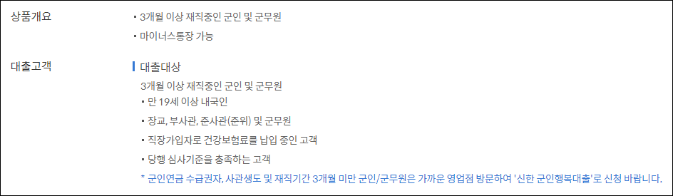 신한은행 군인 신용대출 신청자격