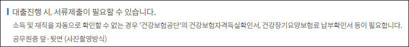 다만 소득 및 재직을 자동으로 확인할 수 없는 경우에 한해 건강보험자격득실확인서 및 건강장기요양보험료 납부확인서 등이 필요하니 참고하셔서 준비하시길 바랍니다.