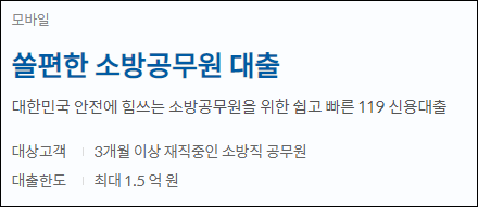 국민의 안전과 재산을 지키기 위해 노력하는 소방공무원의 생활안정자금을 지원하기 위한 비대면 신용대출 상품이 있습니다.