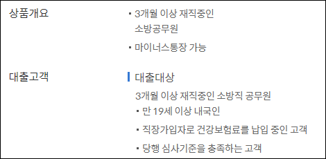 3개월 이상 재직중인 소방직 공무원이 아래의 요건을 충족하면 대출 신청이 가능합니다.