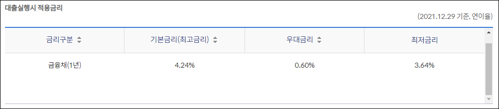 연간 3.64%의 금리가 적용될 수 있지만 신청시기 및 대출조건 등에 따라 실제 금리는 달라질 수 있으니 참고만 하시길 바랍니다.
