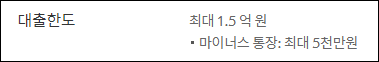 마이너스통장 대출의 경우에는 최대 한도가 5000만원으로 책정되며, 신청인의 대출조건 등에 따라 실제한도는 달라질 수 있습니다.