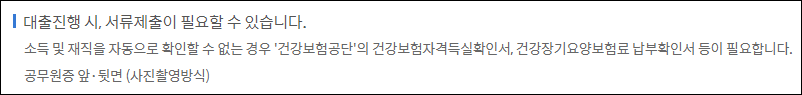 다만 소득 및 재직을 자동으로 확인할 수 없는 경우 건강보험자격득실확인서 및 건강장기요양보험료 납부확인서 등이 필요할 수 있으니 참고바랍니다.