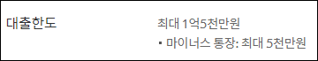 마이너스 통장대출을 신청하는 경우 최대한도는 5천만원입니다.