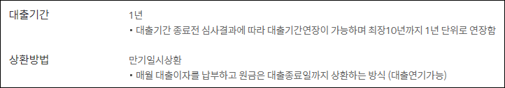 대출기간은 최초 1년으로 약정되며, 대출 만기전 연장신청을 통해 1년단위로 연장하여 최장 10년까지 이용할 수 있으니 참고하시길 바랍니다.