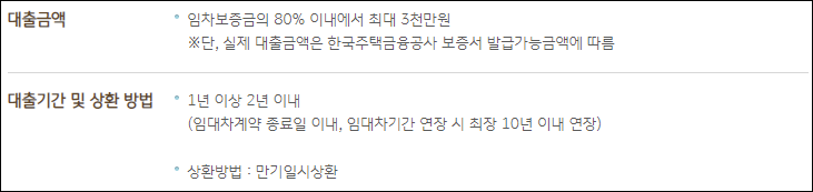 대출기간은 1년이상 2년이내로 임대차계약 종료일 이내로 약정할 수 있으며, 임대차 기간 연장시 최장 10년까지 연장하여 이용할 수 있습니다.